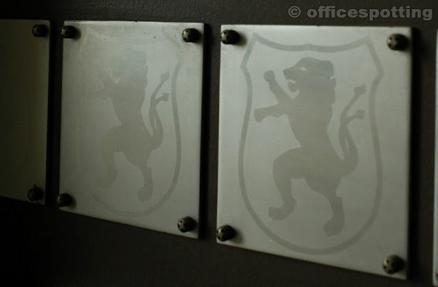 The enormous wooden door is festooned with hundreds of small metal plates, each of which depicts a lion figure. As we opened the door it became apparent that it is in fact the ReVISION logo that appears on the door, but as we were told the small metal logos were left there by the previous tenant. As they put it, they didn’t find their office, their office found them.